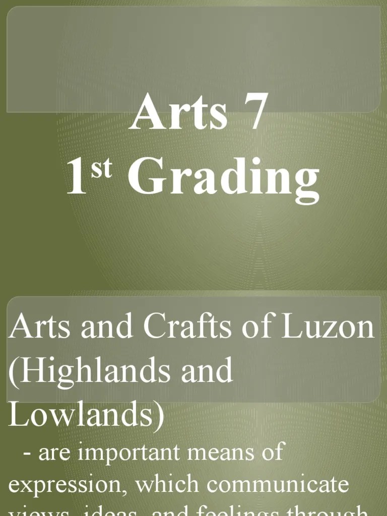 Arts and crafts of luzon (highands and lowlands) 2... Aug 23, 2015 · different arts and craft of luzon 1. Creation of arts and crafts of luzon (highlands and lowlands) attire, fabrics, and tapestries learning competencies the learner: Arts and crafts of luzon (highands and lowlands) 2. Palawan artifacts and souvenirs mangyan design of pakudos/bracelet 3. Marinduque ceramics and pottery romblon marble art and crafts 4. Arts and crafts of the ilocos region and the cordillera administrative region (car) 3. Creates crafts that can be locally assembled with local materials, guided by local traditional techniques (e.g., habi, lilip, etc). Abra arts and crafts …. Marinduque ceramics and pottery romblon marble art and crafts 4.